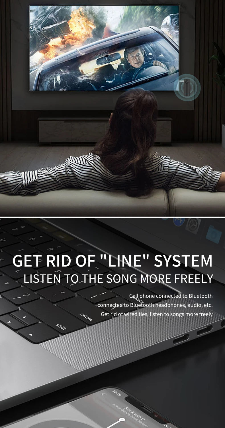 Features1: Bluetooth 5.3 Audio Receiver Transmitter Stereo Music Hansfree Call 3.5mm AUX Jack USB Dongle Wireless Adapter For TV PC Car Kit