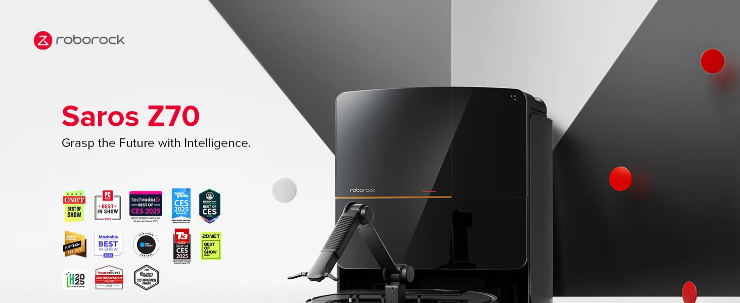 Despite housing a mechanical arm, dual cameras, and high-powered suction, the Saros Z70 maintains an ultra-thin 3.14” profile. It seamlessly glides under furniture and tight spaces, ensuring no dust is left behind